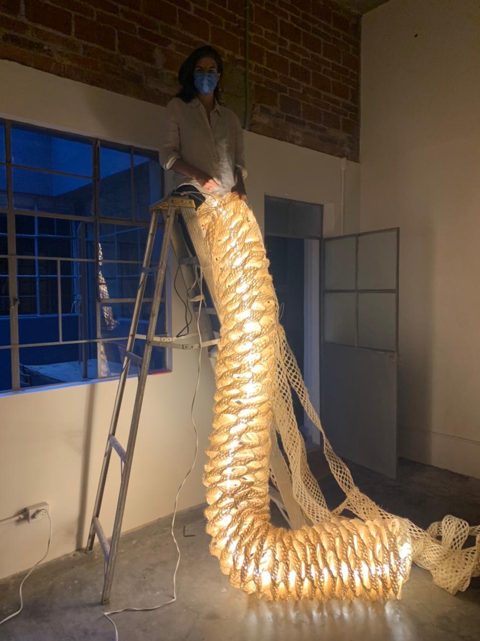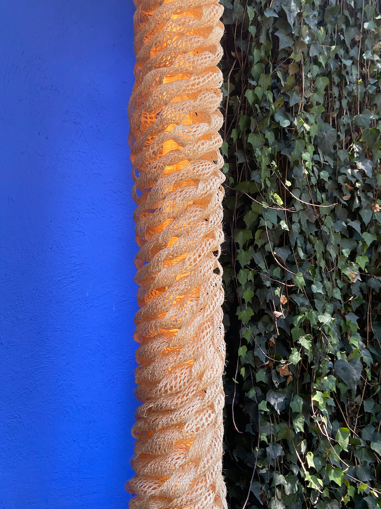 Hanging lamp made out of braided sisal made by artisans from Yucatán.