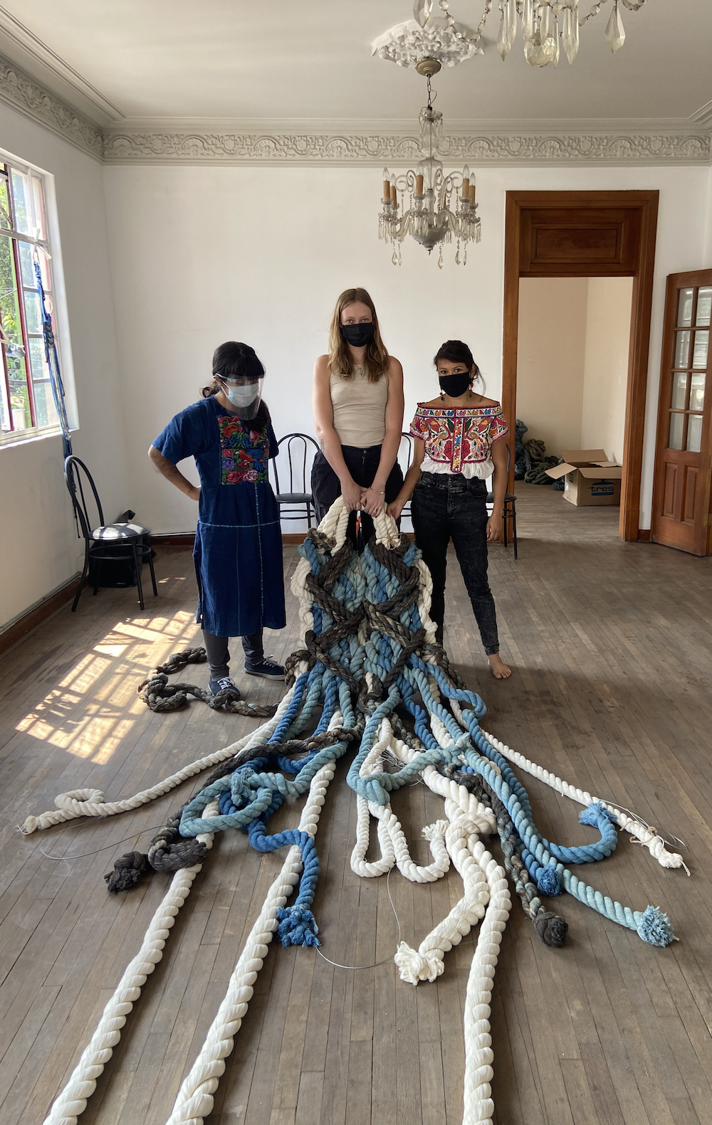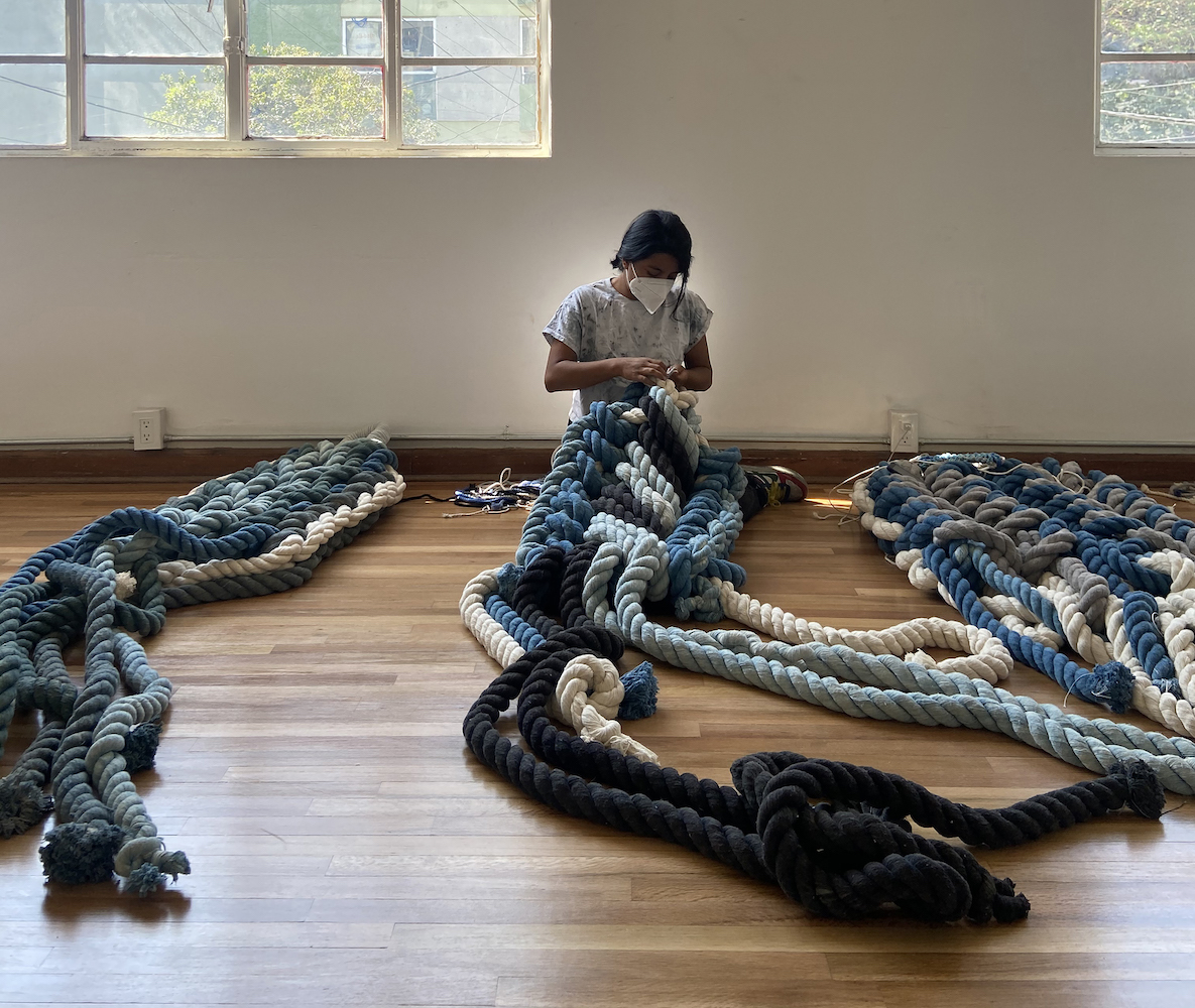 Cotton macrame hand dyed with indigo